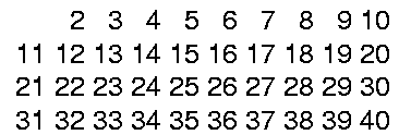 Voici un exemple pour déterminer tous les premiers de 1 à 40 :