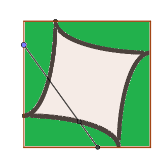 Voici ce que l'on obtient lorsque la courbe $C$ est un carré, que la corde a pour longueur le côté du carré, et que l'on place un point au quart de la corde :