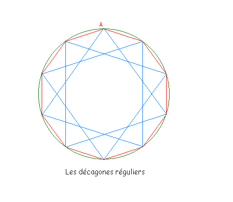 - Le décagone régulier : dans un cercle, on peut inscrire deux décagones réguliers, le décagone régulier convexe et le décagone régulier étoilé.