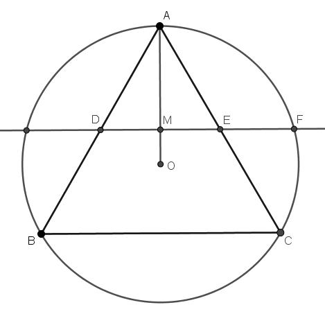 On peut également retrouver le nombre d'or dans la figure formée par un triangle équilatéral et son cercle circonscrit :
